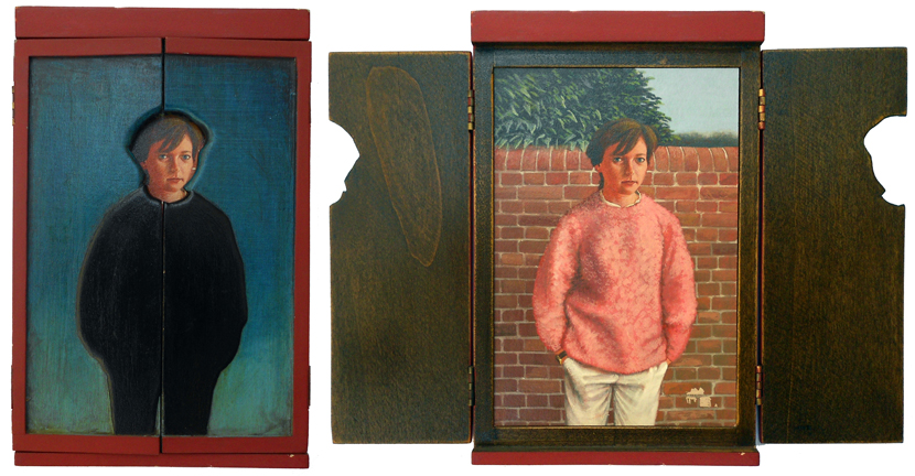 Now to my point, finally. When I got back to Brooklyn I had two photographs of Marina and weeks worth of memories I desperately wanted to retain. I painted a number of pictures of her based on those photos but none of them captured what I wanted. Then I decided to make a miniature gouache of her to carry around in my pocket but how to protect it? Little doors would do the trick, now I had two additional surfaces to paint on. Once I’d finished it, it struck me like a punch in the face: THIS IS HOW I THINK! Suddenly, everything made sense and I knew what I wanted from art and what was important to me.